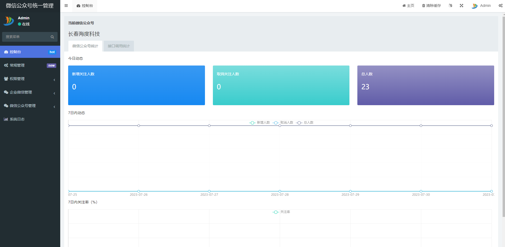 提供新关注人数、取关人数、七日内用户变化动态、关注率统计