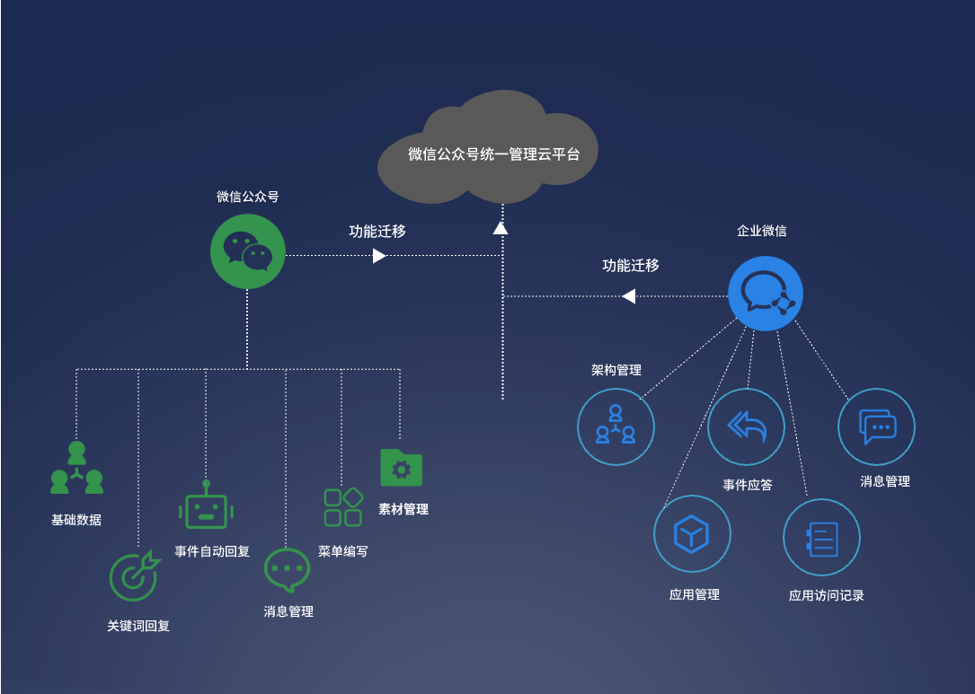 将企业或院校中分散的企业微信号、微信公众号进行集中管理