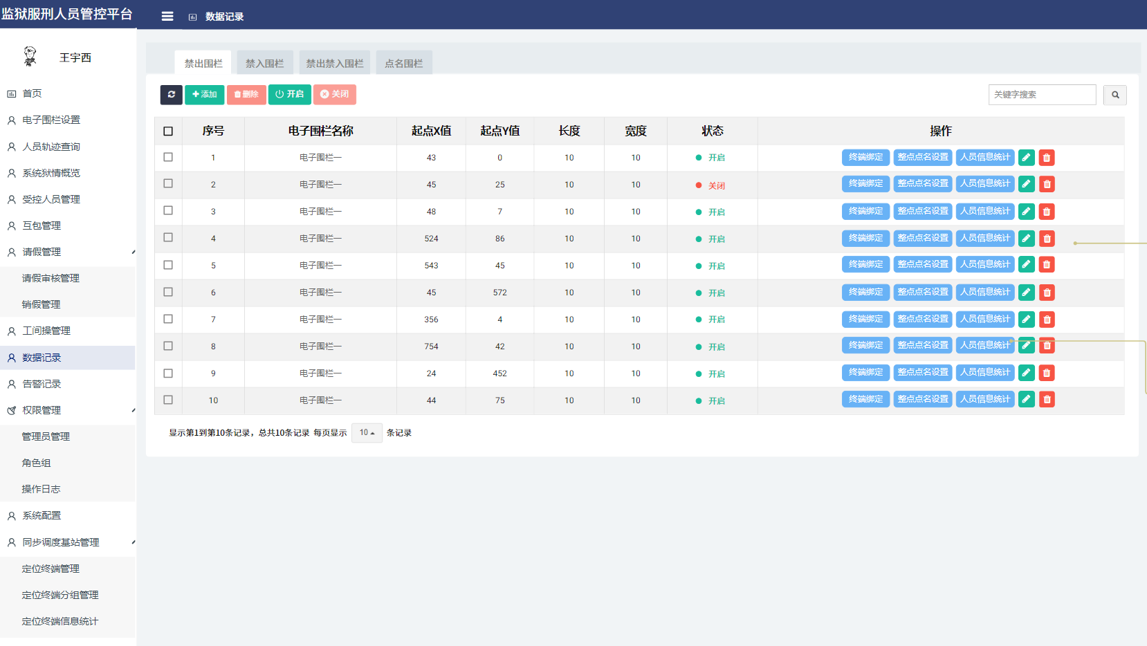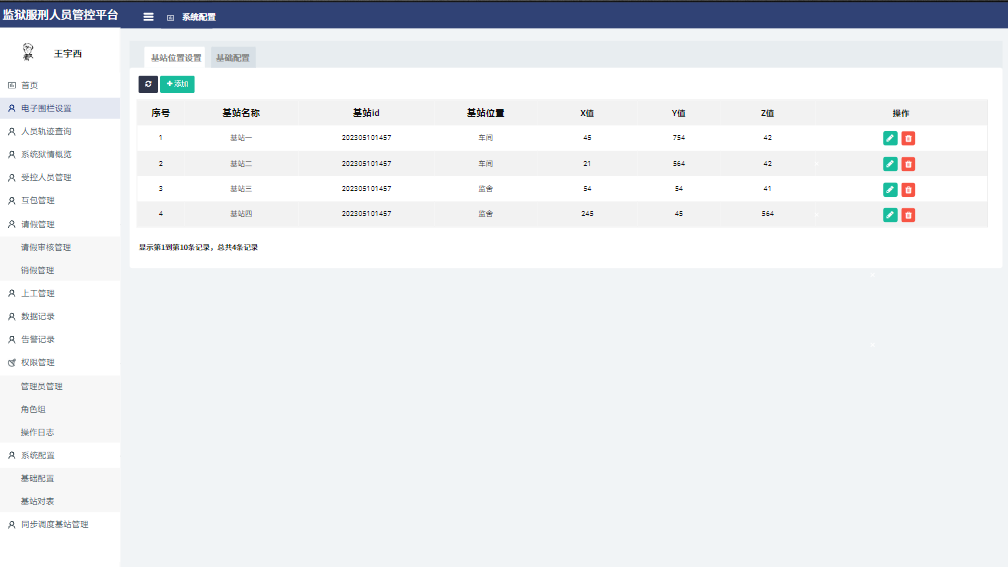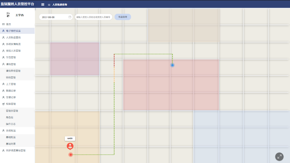 可视化显示狱警设置的电子围栏、基站位置、人员实时定位