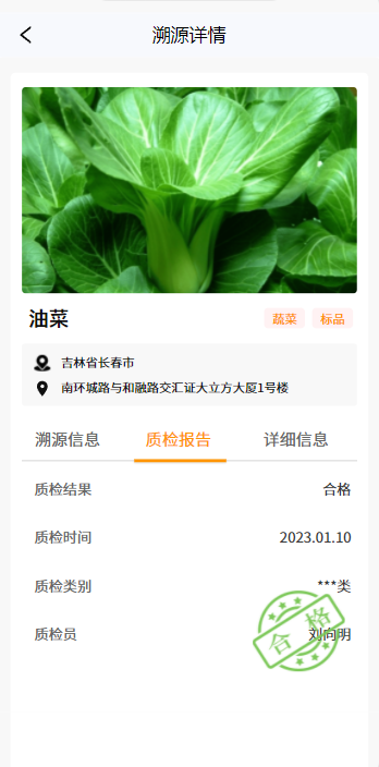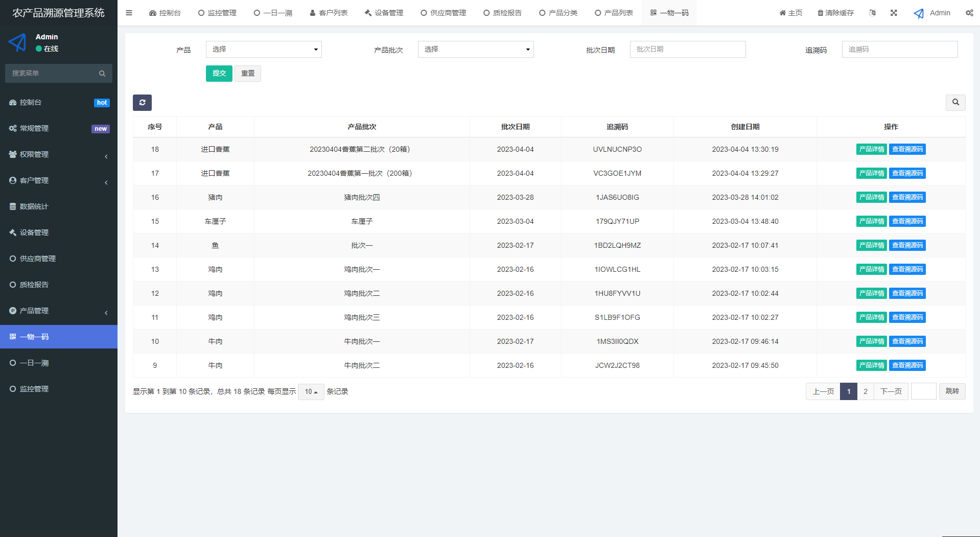 管理C端标品的溯源码,实现C端标品“一物一码”,C端用户通过微信扫码即可查询该品的溯源信息,包括产地、批次、供应商等信息