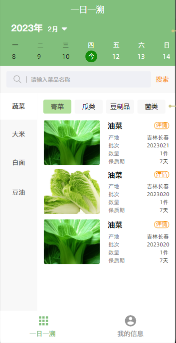 管理B端集采配送货品的溯源信息,通过“一日一溯”功能,既能保证B端客户可以随时查询当日接收到的货品的来源信息,又能避免仓储部门对于B端非标品进行“一物一码”操作增加的工作量