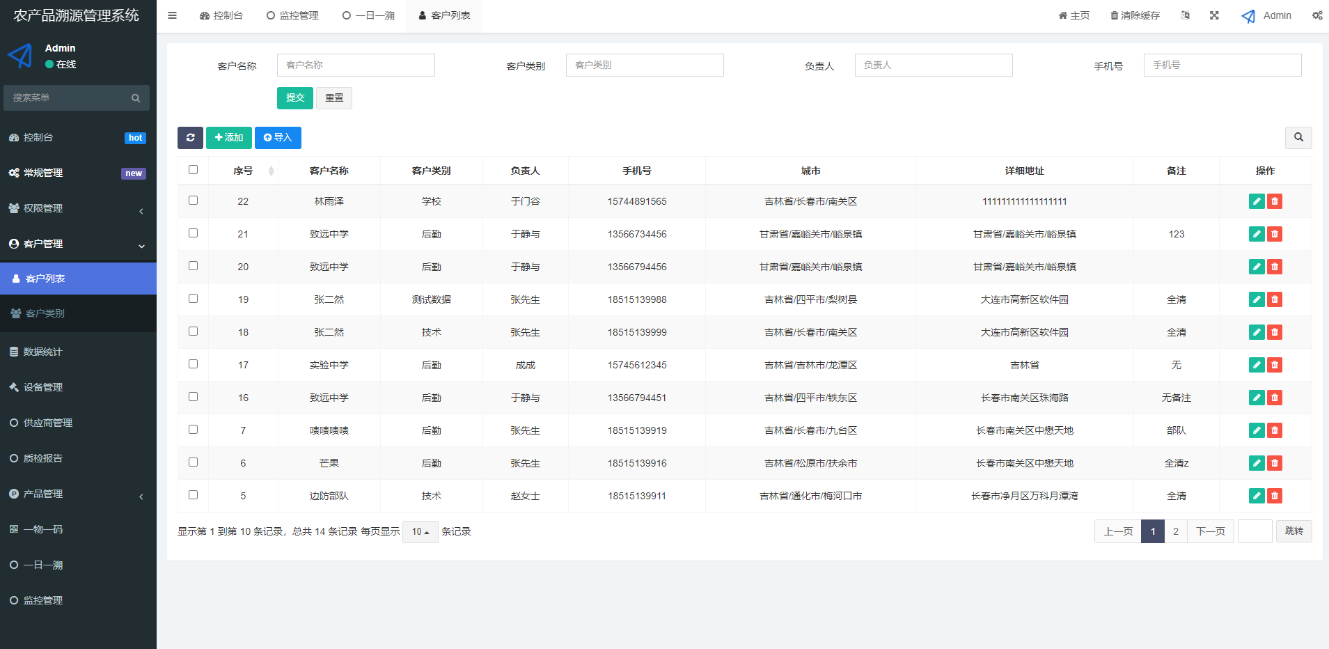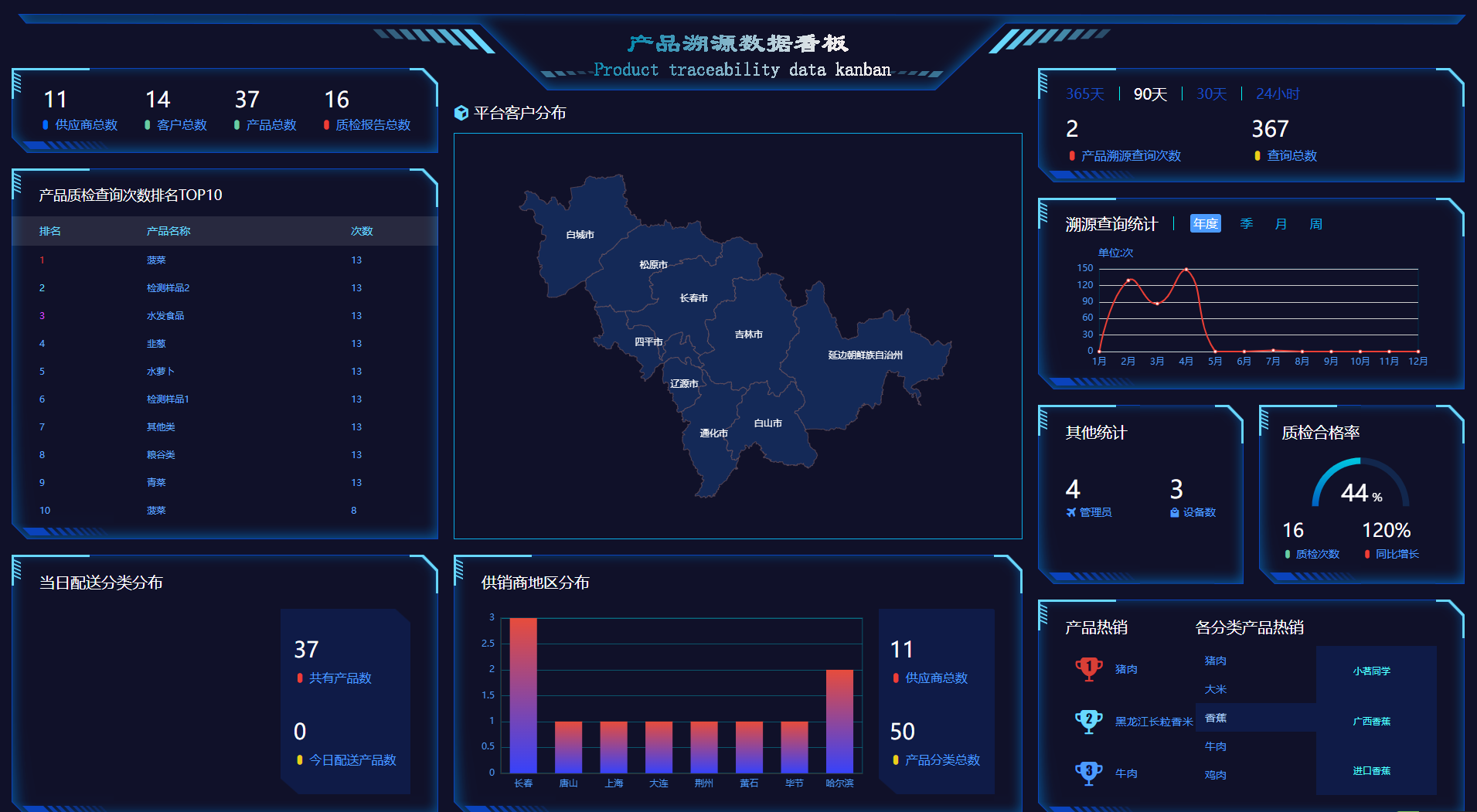 多维度统计分析展示全平台的供应商数据、客户数据、产品数据、溯源查询数据