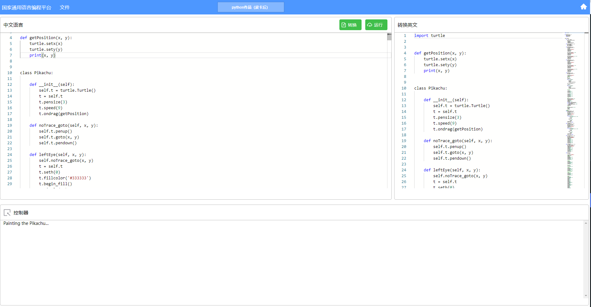 系统根据配套的智能硬件提供的控制接口,可以实现对智能硬件的中文可视化编程支持,可以将编写好的程序下载至连接的智能硬件实现对智能硬件的控制