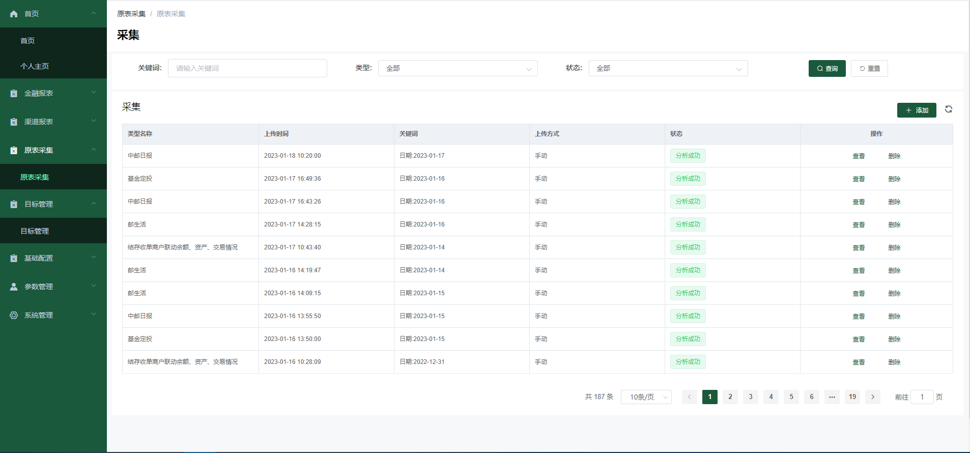 通过数据管理平台对各种异型表进行重组、汇总、分析,根据用户需求,生成新的数据报表。
