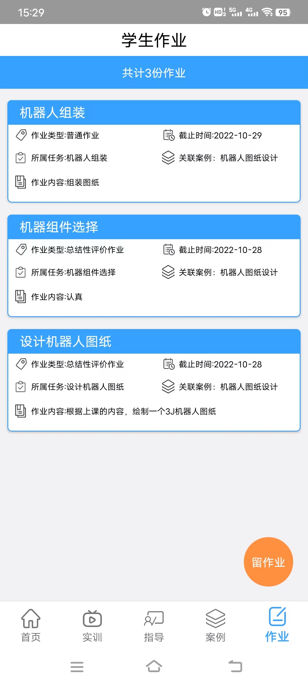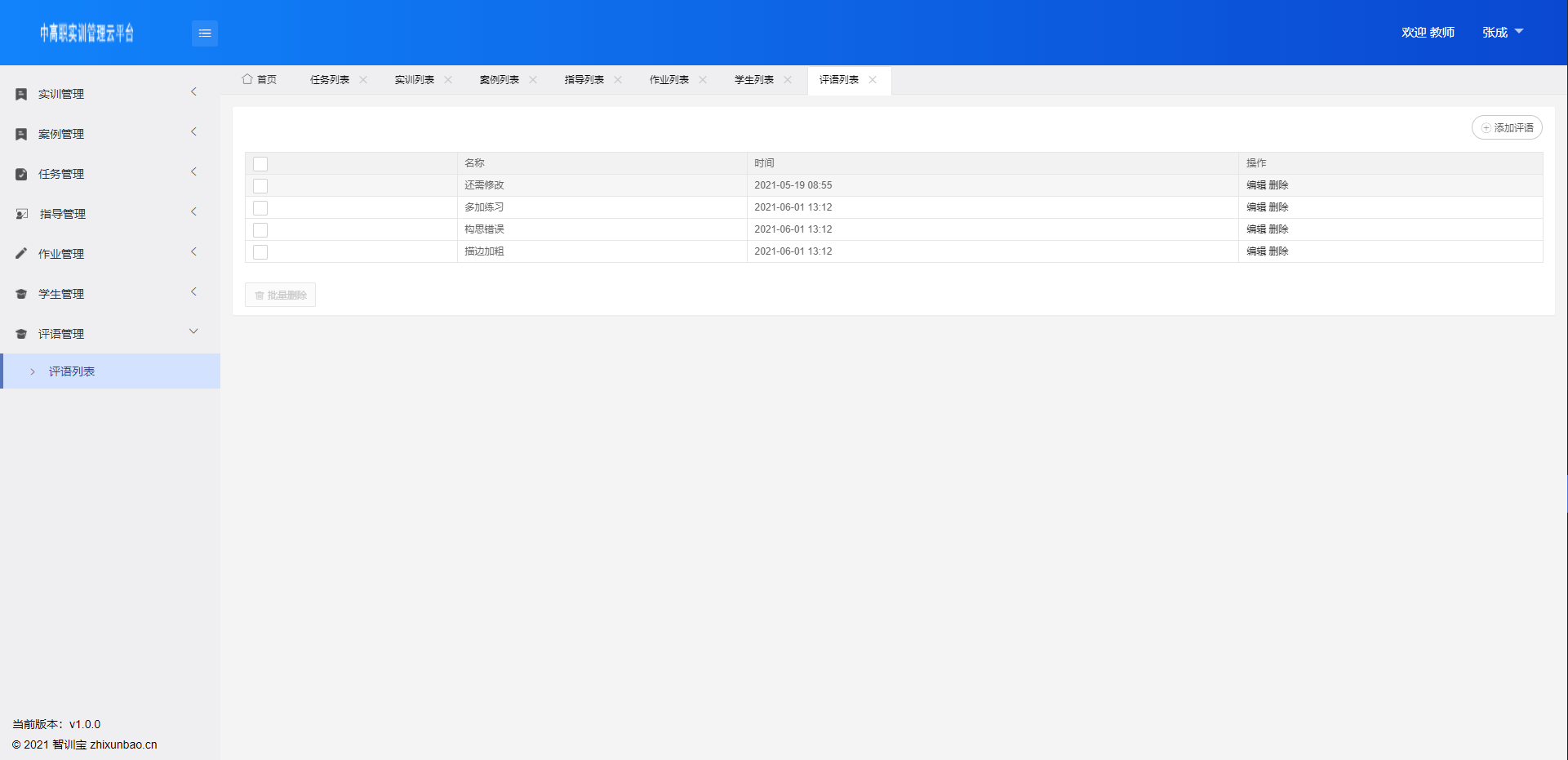 学生上交录制实训作业,教师查看作业给予评价