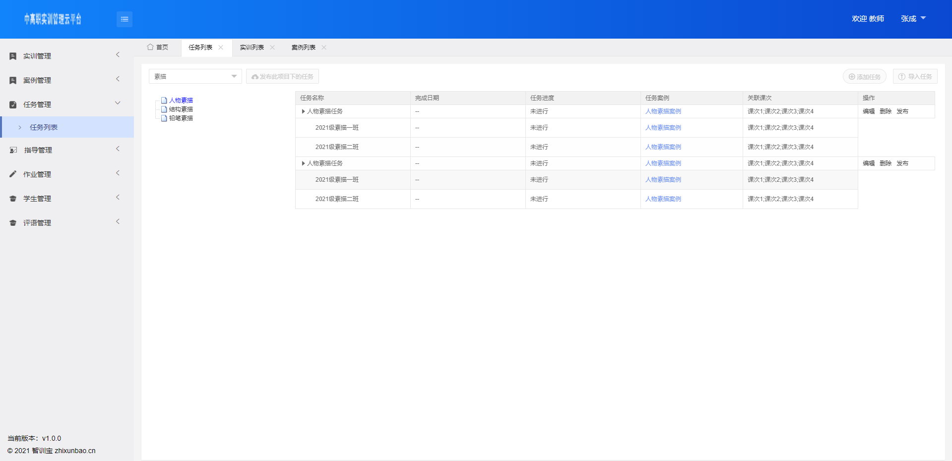 管理实训项目、设置实训目标、设置实训任务