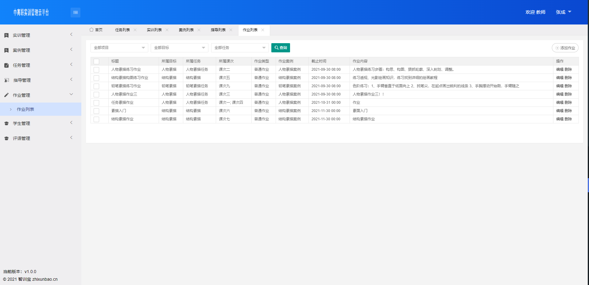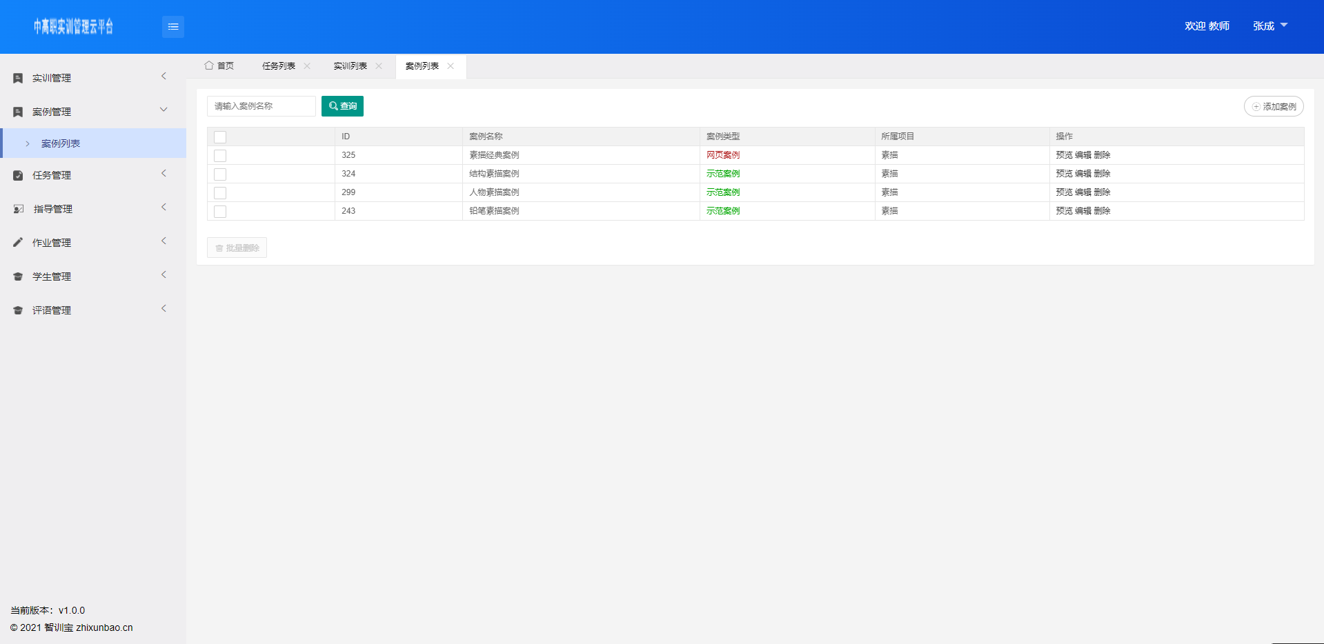 教师录制实训相关案例,学生根据实训课程查看